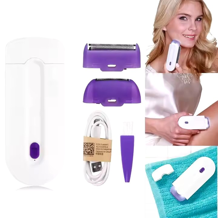 - Accessoires inclus : Tête de rasage, tête de massage pour les zones sensibles, et un gant exfoliant pour préparer la peau.